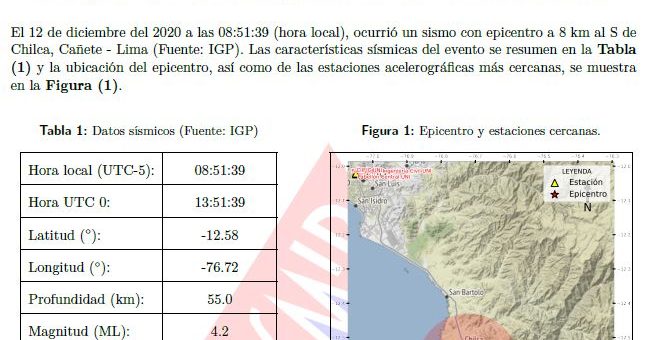 El 12 de diciembre del 2020 a las 08:51:39 (hora local), ocurrió un sismo con epicentro a 8 km al S de Chilca,...