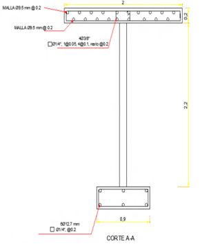 EML-1 EML-2: ref. long. y vertical 4 f 3/8″ – malla 3/8”@20 y ref. transv. f 1/4″, ladrillo industrial, ens. muro losa superior.