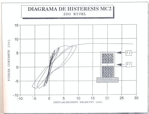 Características: Se ensayaron estructuras de albañilería confinada de dos niveles, con aparejo de soga. Los especímenes se ensayaron sometiéndolos a cargas laterales cíclicas, controlando el ensayo por las fuerzas aplicadas en los entrepisos (cuya razón se mantuvo constante durante el ensayo).