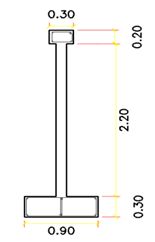 Material: Ladrillo (King Kong-Rex) de 24 huecos de arcilla industrial, con dimensiones de 24x12x9 cms, presentado un área neta de 189 cm2 y un área bruta de 287.5 cm2