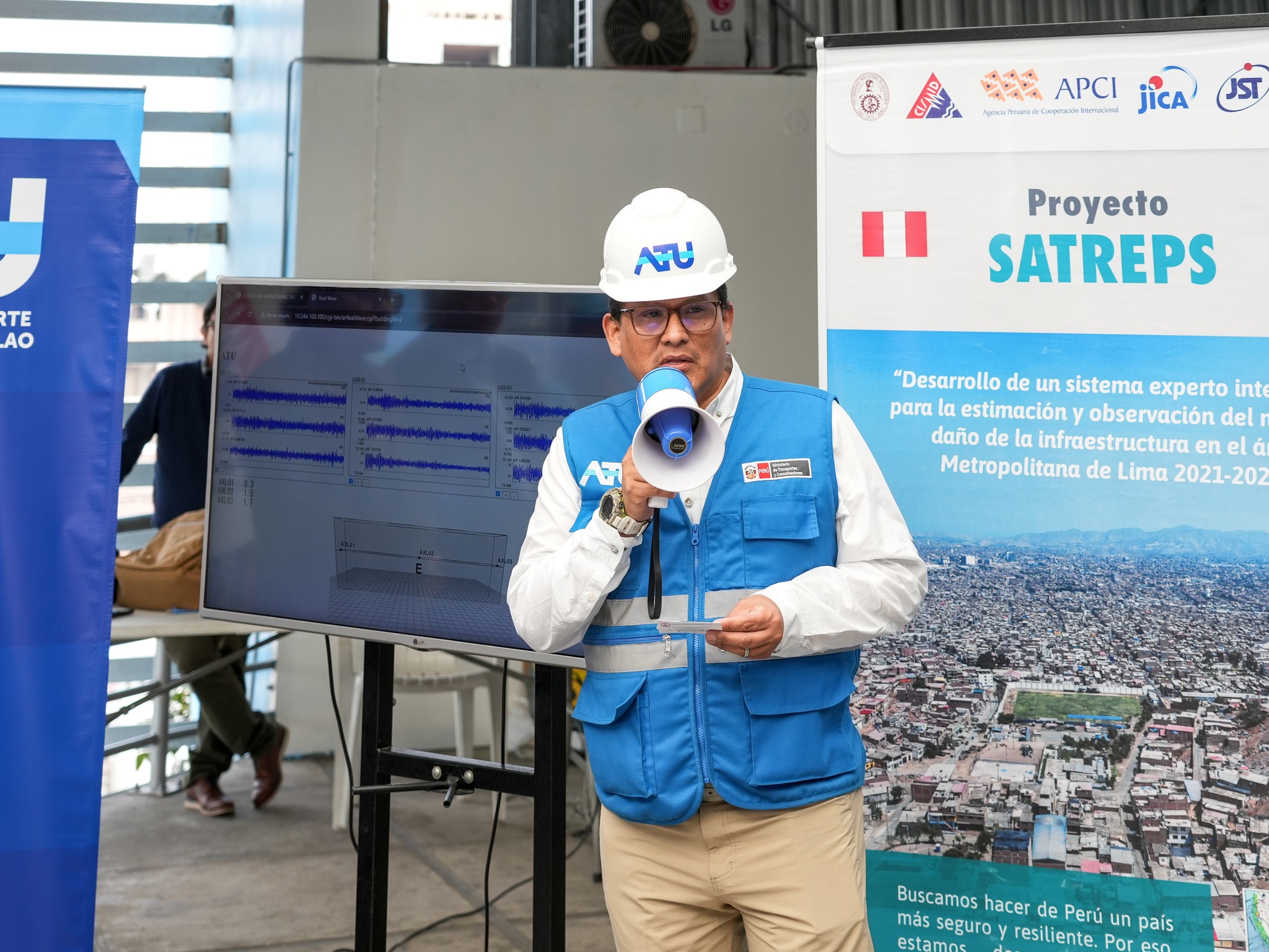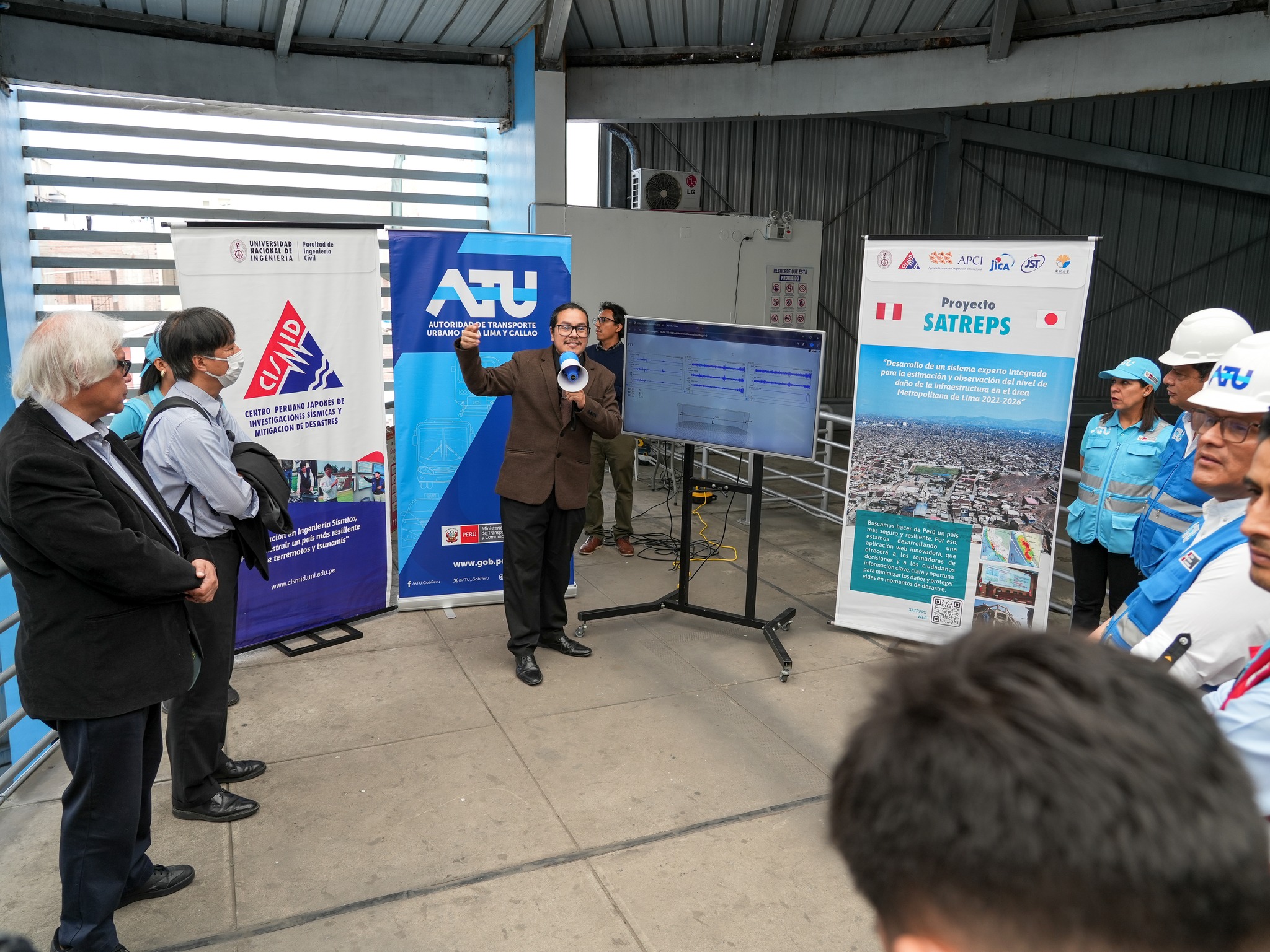 The system’s official presentation, held on December 15, brought together authorities and experts, including ATU’s Executive President, Lic. David Hernández; Dr. Koichi Kusunoki, SATREPS Project Leader for Japan and professor at the Earthquake Research Institute of the University of Tokyo; and Dr. Carlos Zavala, SATREPS Project Leader for Peru, along with researchers from CISMID.